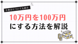 運用方法 10万円を100万円にする方法を解説!注意点についても紹介 「10万円を100万円に増やすにはどうしたらいいの?」と疑問に思っていませんか? 少額投資を検討中の方にとって、限られた資金をどれだけ効率的に増やすかは、最大の関心事ですよね。 そこで今回は、10万円を100万円に増やす […] The post 10万円を100万円にする方法を解説!注意点についても紹介 first appeared on インテク Produced by 株塾.... 2025.09.30 運用方法