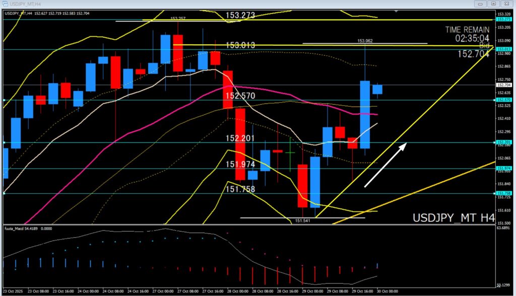 ●押し目ポイントになりそうなのが152円50から45付近、ここはサポートが結構ありますので狙ってみたいポイント!反発がなければ152円30台まで下落する可能性が高まりそうです。